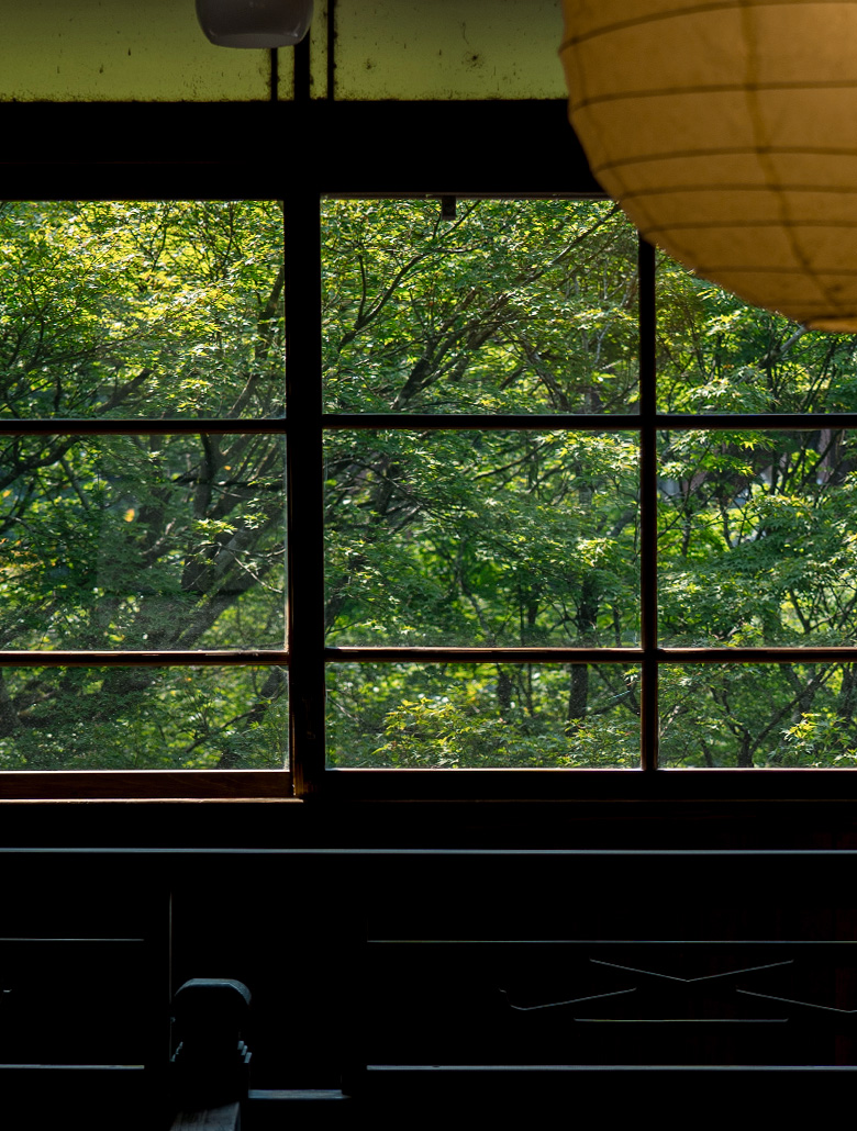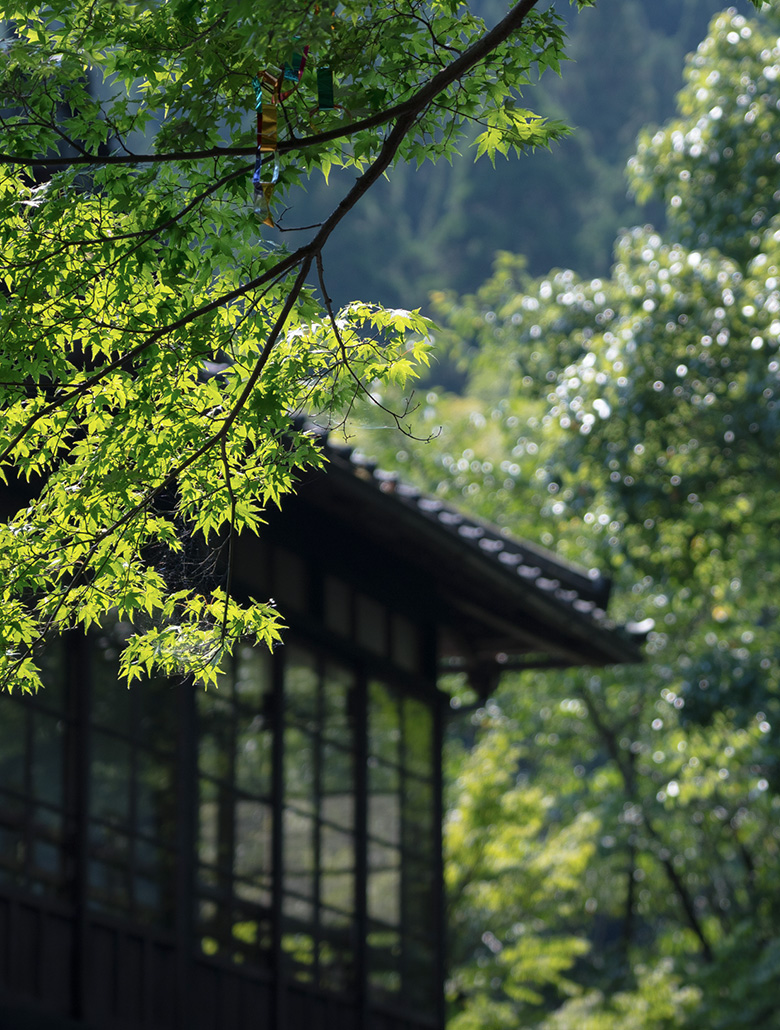 川沿いの離れは目の前の天降川の流れが手を伸ばせば届くようにあざやかで、施設を取り巻く竹林とそこから裏山へと登る道筋には、生活圏の近くであるということを忘れさせてくれる別世界が広がります。
