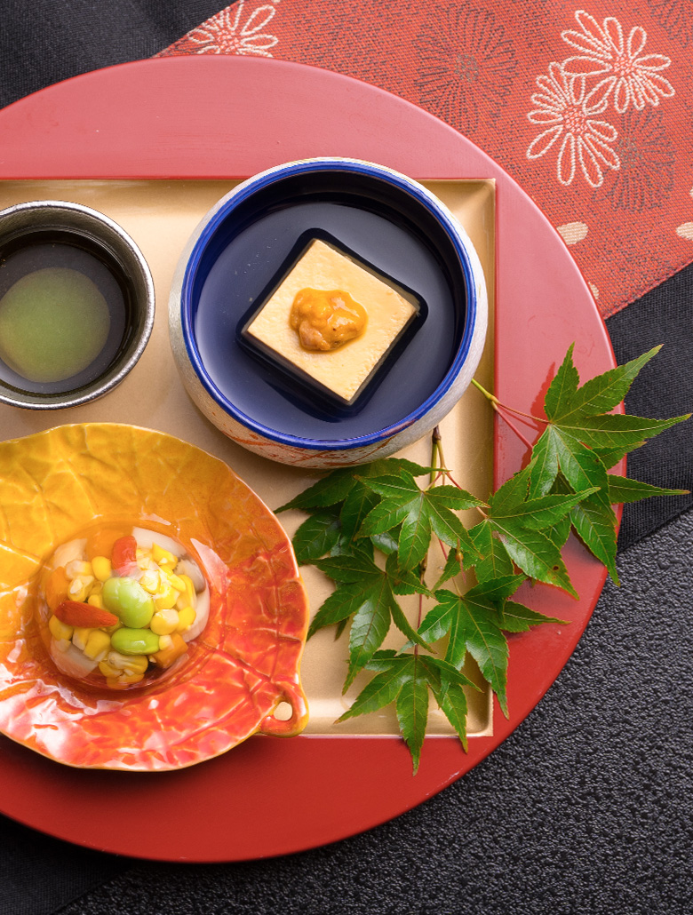 折橋の入口に橋が架かるごとく、料理の中に思いの橋を架けたい。風情ある宿であることを料理の中にも表現したい。