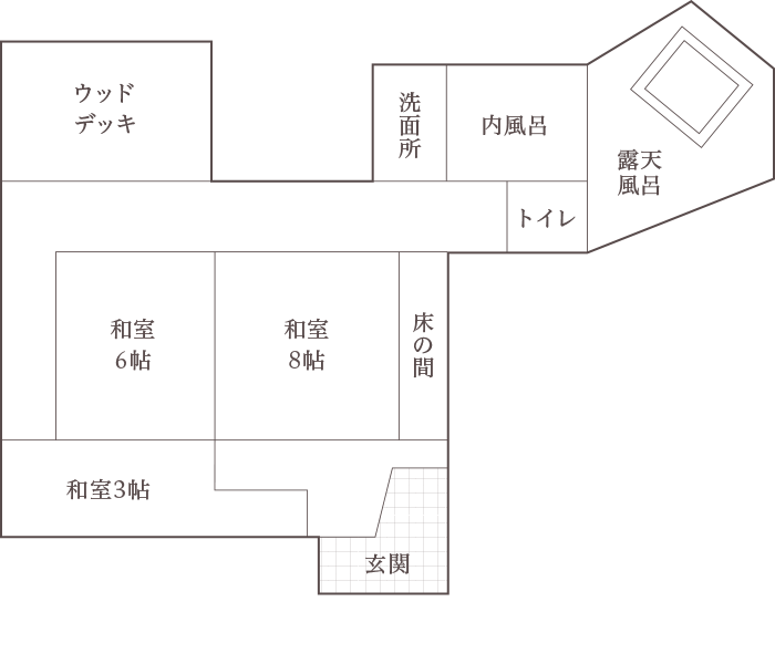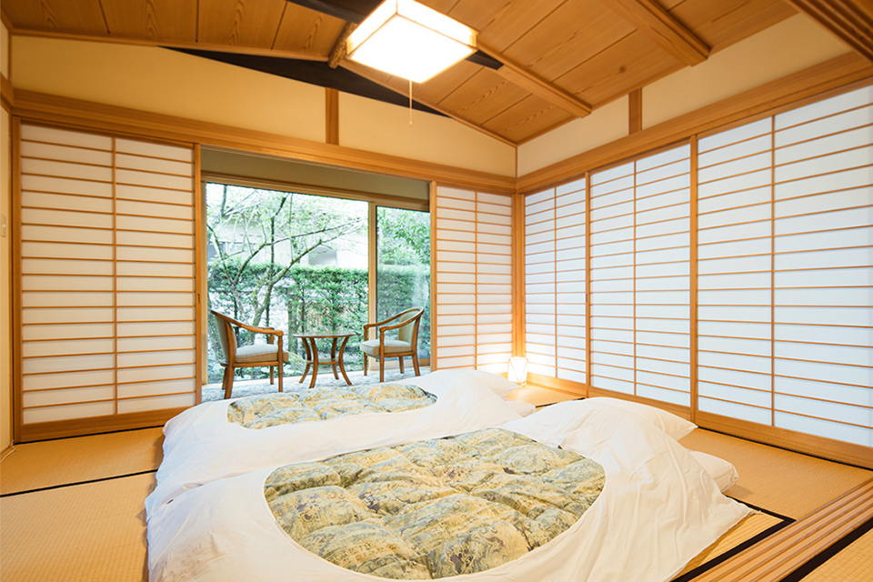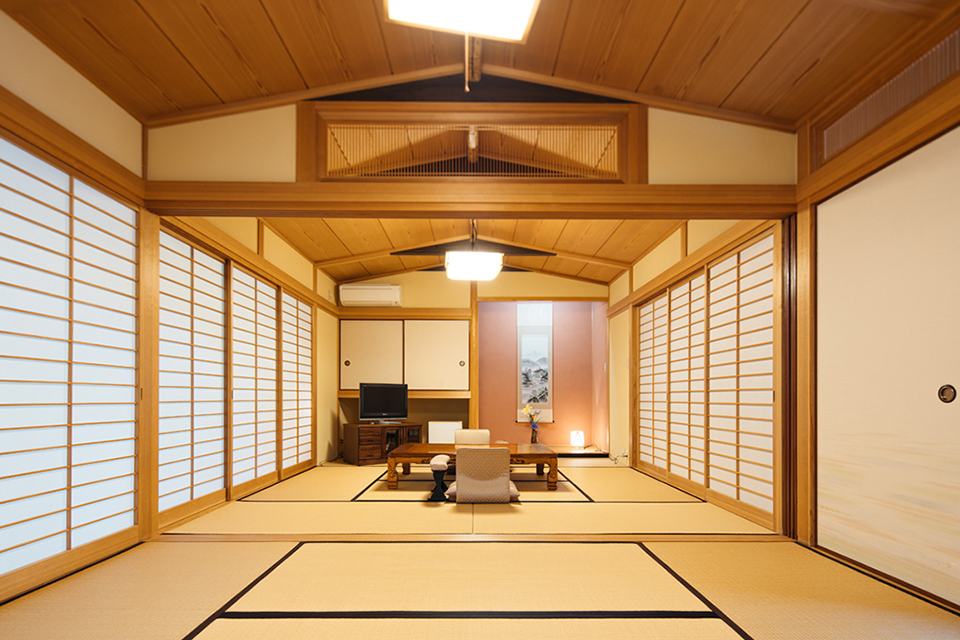 離れ 和室(8帖+6帖) / 開放的なウッドデッキのある川沿いの離れ